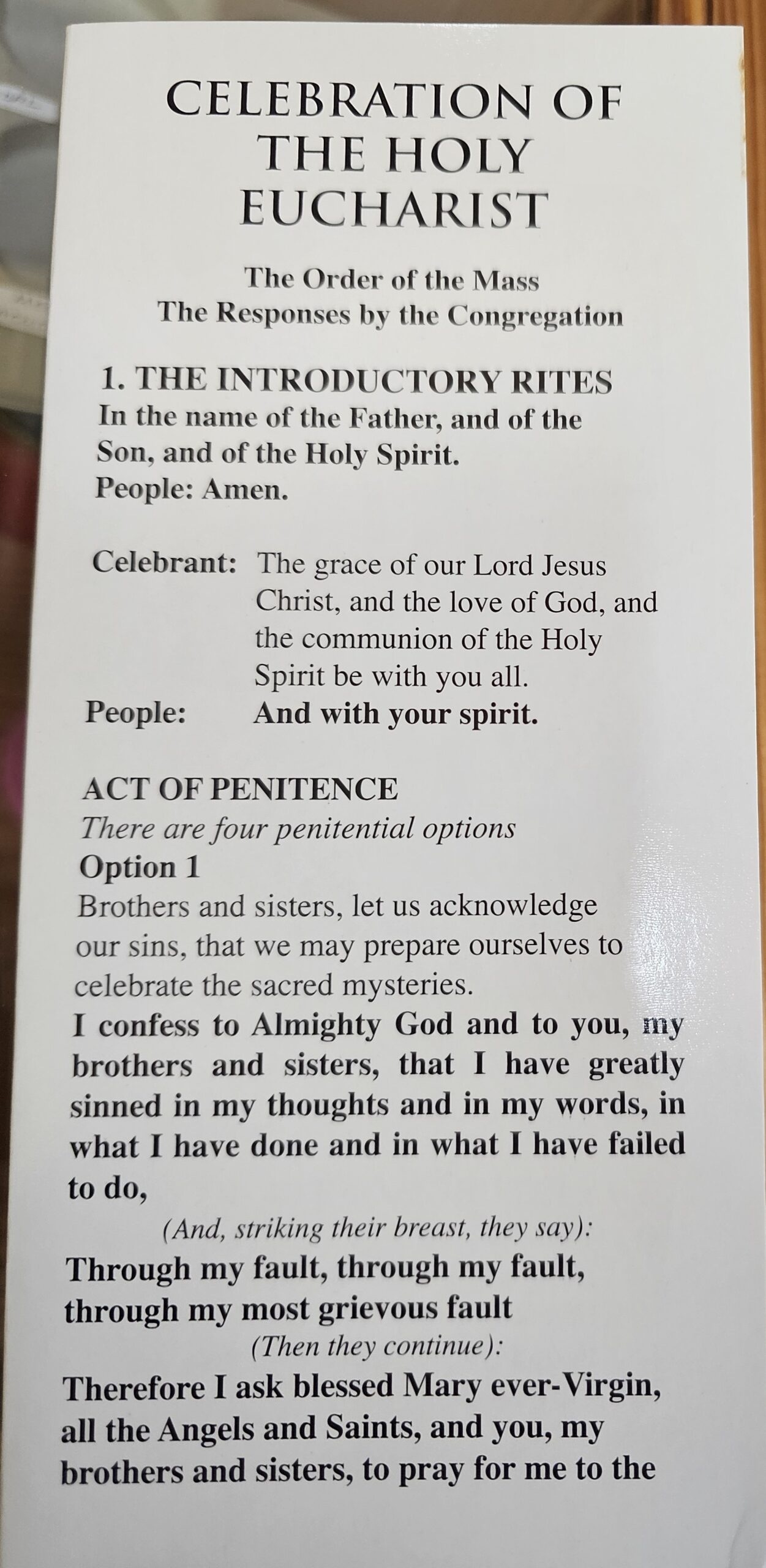 This clear and easy-to-follow guide presents the full Order of the Mass with the congregation’s responses, prayers, and key parts of the liturgy. From the Introductory Rites and the Act of Penitence to the Liturgy of the Eucharist and Communion, it helps the faithful participate more fully in the sacred mysteries.